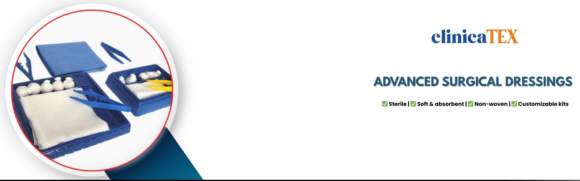 Clinica Tex by Surgeine Healthcare delivers dependable, sterile surgical dressings and nonwoven solutions tailored to the needs of modern healthcare. Built for safety, ease of use, and patient comfort, our range includes gauze swabs, absorbent pads, and dressing kits trusted in operating rooms, ICUs, and wound care clinics.