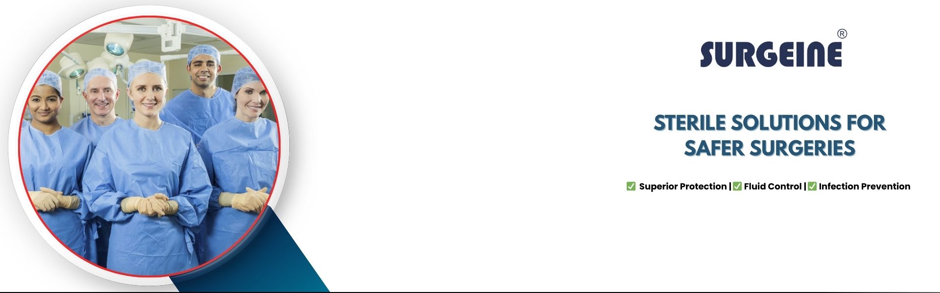 Surgeine represents our core commitment to sterile precision in the operating room. Focused on surgical protection, the brand delivers high-quality gowns, drape sets, and equipment covers designed for critical environments. Every product under Surgeine is manufactured to enhance barrier performance, ensure compliance with global standards, and support surgical teams with comfort, confidence, and consistency. From routine procedures to complex surgeries, Surgeine is trusted to maintain safety where it matters most at the heart of patient care.